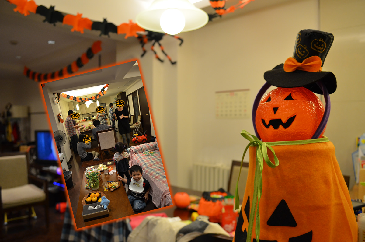 その後、土曜日にいつも仲良くしてもらっている家族が集まってささやかなハロウィンパーティもしました。これまた淘宝で買った内装類ですが、安い&簡単にした割には好評で良かったです。料理はもちより、私はコロッケ担当で、普通のコロッケとパンプキンコロッケを作ったのですが、こちらのかぼちゃはとっても柔い…というか水っぽい!かなり作り辛かったです。が、なんとかそこそこ美味しく出来ましたよ。みんなが作ってきてくれたお料理も美味しかったです。また来年もやろう!