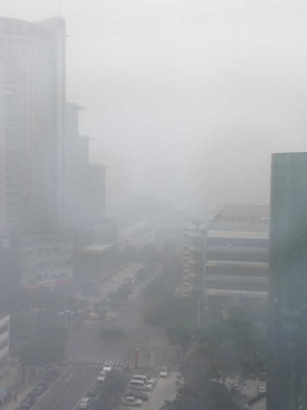 冬が来ると大気汚染が進みます。それでも北風が吹いてりゃましなんですが、12月初旬、風が吹かない日が多く、急に大気汚染が悪化しました。写真はいつも通っている中国語の学校の窓から写した12月6日の景色。びっくりするほど煙っています。晴れているはずなのに肉眼で太陽を直視できる酷さでした。高速道路は通行止めになる視界の悪さ。日本の報道はどうか知りませんが、中国も今努力しています。日本企業の人が、また中国の締め付けがきつくなって、工場を建て辛くなったとぼやいているのを聞きました。少なくともこの辺りで大きな工場は全部外資系です。日本企業を始め外資系は環境に対する技術があるんだから率先して対策をして欲しいのに、コストを追うためか、中国の空気を汚しているのですね。これでまた『規制が緩くて簡単に工場を建てられる』別の国へ行って、大気汚染を繰り返すのでしょうか?……恥を知れよ(byマルコ)。結局日本にもこの空気流れるんだし、地球規模で考えて欲しいですねぇ……。